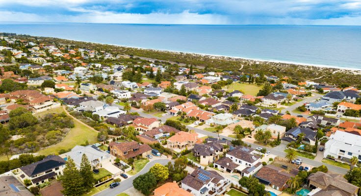 Just because you have a small space to work with doesn’t mean it cannot be beautiful. Case in point this gorgeous guest powder room that doubles as a laundry (pictured below). The penny round tiles pair perfectly with the gold tapware and rail, which makes great use of space when drying clothes. The toilet is smartly hidden behind the functional benchtop and there’s still plenty of space for cupboard storage.